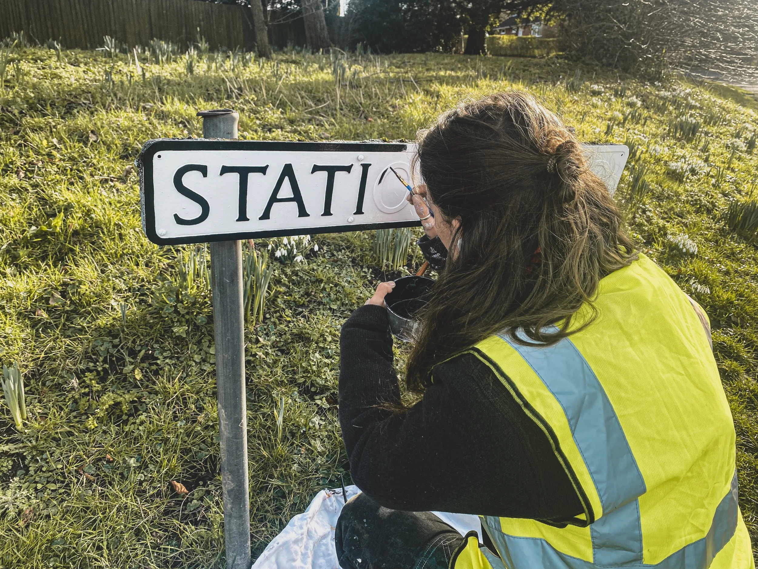 In 2021 I started a project I coined ‘useful vandalism’ around the village I grew up in. There were a good few tired metal road signs and I felt like I could strip them and re-paint them as a challenge to my newly acquired sign wiring knowledge. No permission, just some criminal kindness. I’ve done a fair few since then and am continuing to do more when I have the time and energy [and money]