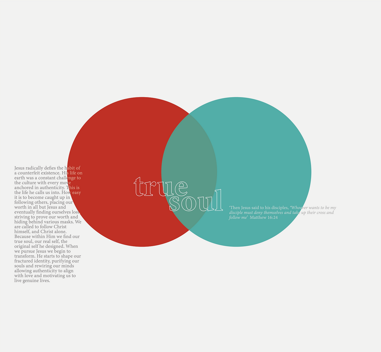 After spending some time thinking about the idea of our 'authentic self' I felt the need to try and visualise a small chunk of thoughts that kept occurring in my head. So I made a venn diagram trying to grasp the reality that when we are closest to Jesus, we are closest to our true authentic self - our true soul.
